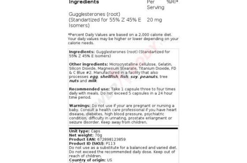 | Dosage (medical) | 25 mg of guggulsterones three times a day |